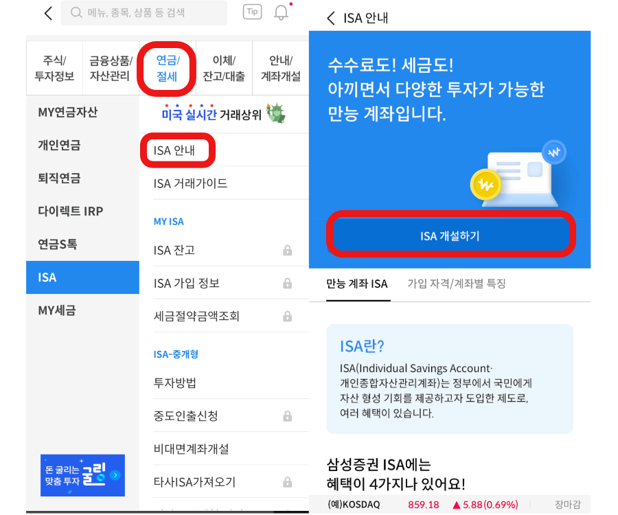 ▶ 삼성 증권에서 ISA 계좌 만들기
